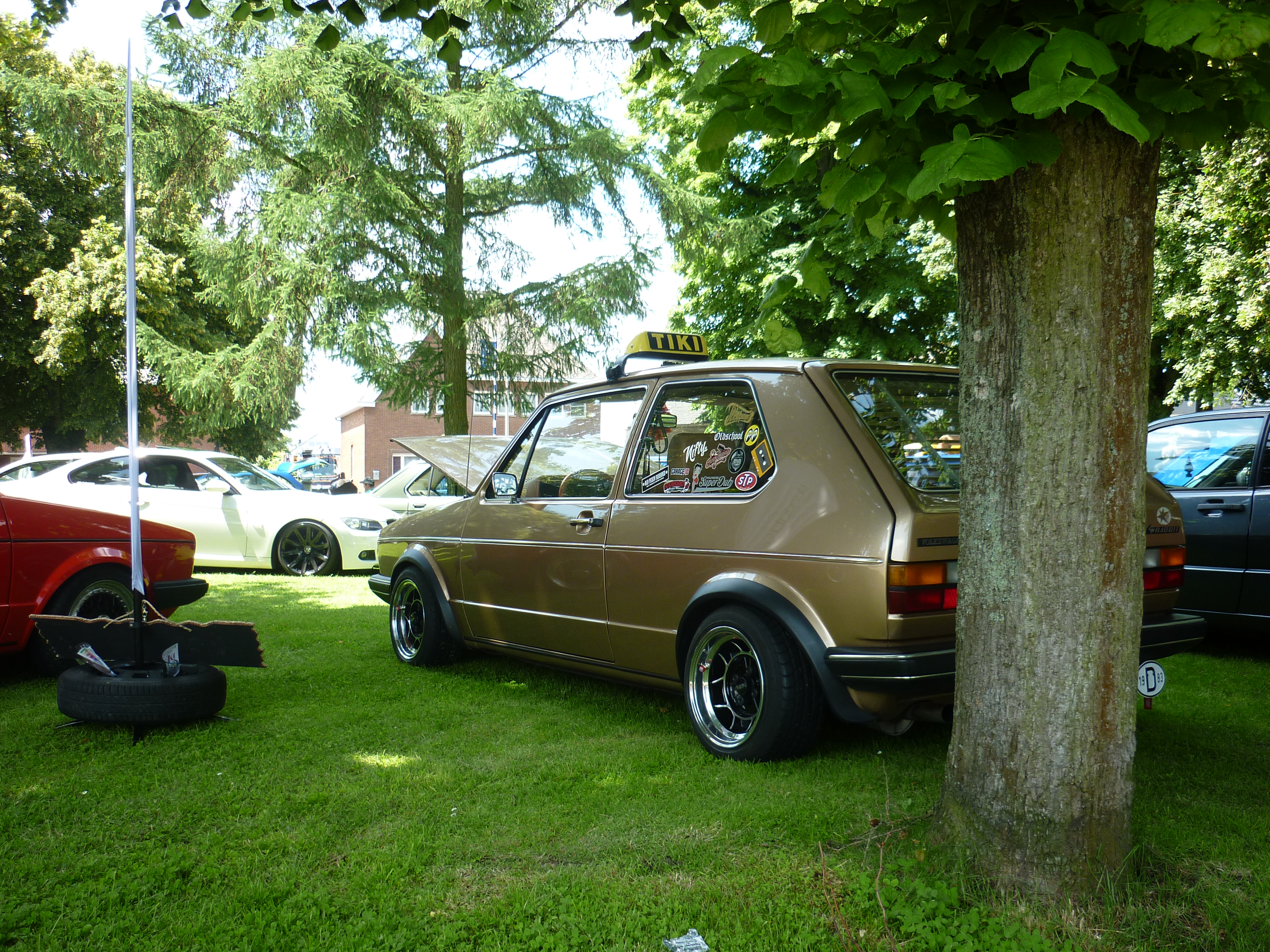 Nachdem wir die Tiki Lounge eröffnet hatten, sprich Klapptisch aufklappen, Klappstühle aufklappen, Beachflag aufstellen und das namensgebende Schild aufhängen, ging es über den Platz. Schließlich geht es nicht nur ums gesehen werden, sondern auch ums sehen. Und zu sehen gab es Einiges. Es waren echt einige schöne Fahrzeuge dabei.